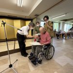 西野神社御神輿渡御 2025.10.04今年も西野神社の秋まつりに合わせて、御神輿が当園に来てくださいました!毎年恒例の行事として、ご入居者様・職員ともに心待ちにしているひとときです。遠くから祭囃子の音が響くと、皆さまの表情も一層明るくなりました。獅子舞に頭を噛んでもらい、神主様より祝詞と玉串を奉納し、厳かで温かい空気に包まれました。地域の伝統とつながる大切な時間を、今年も皆さまとご一緒できたことに感謝いたします。